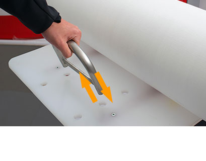 Używaj Compact e-Lifter Lite, aby uniknąć urazów pleców i bez wysiłku załadować rolki z nośnikiem do drukarki.