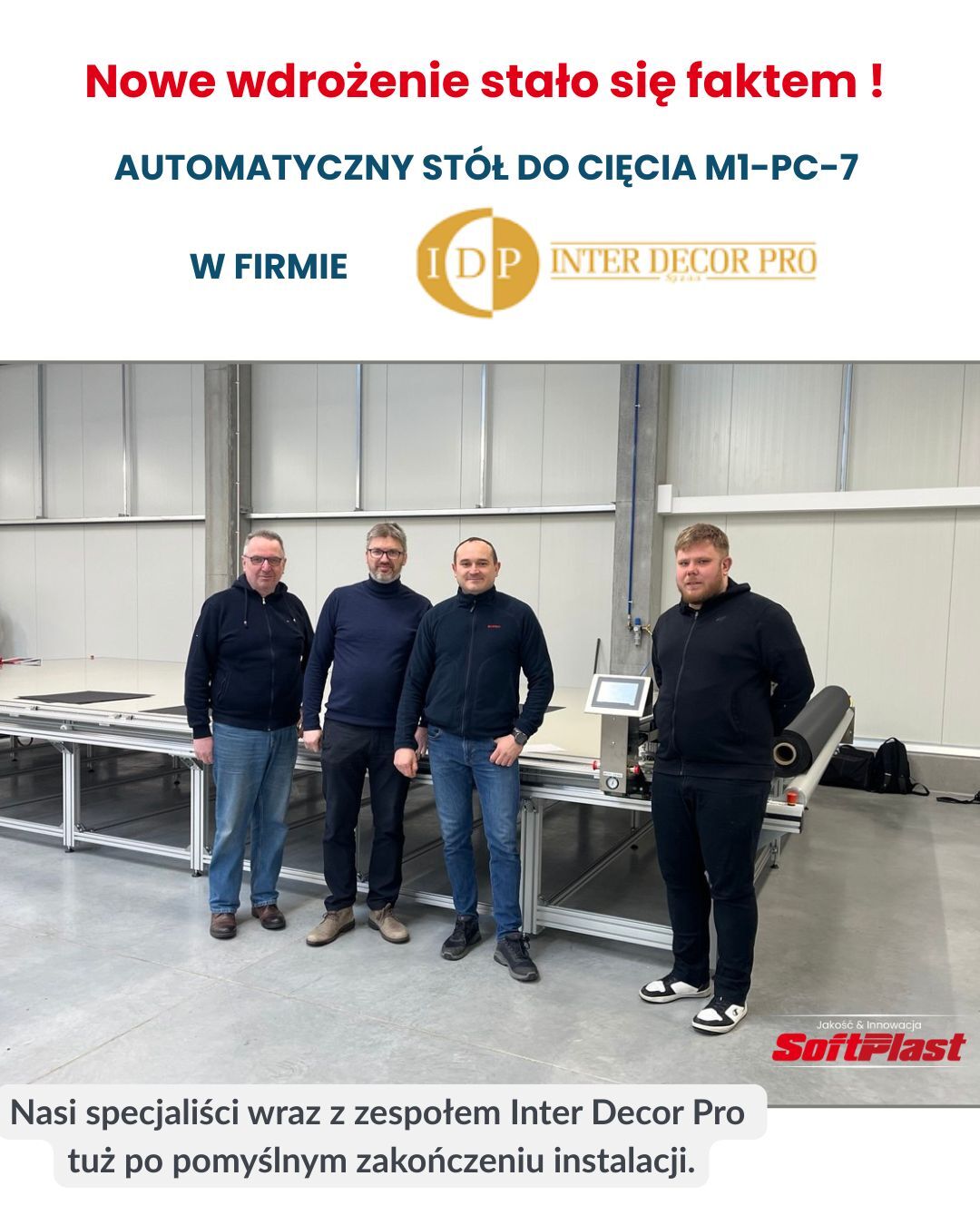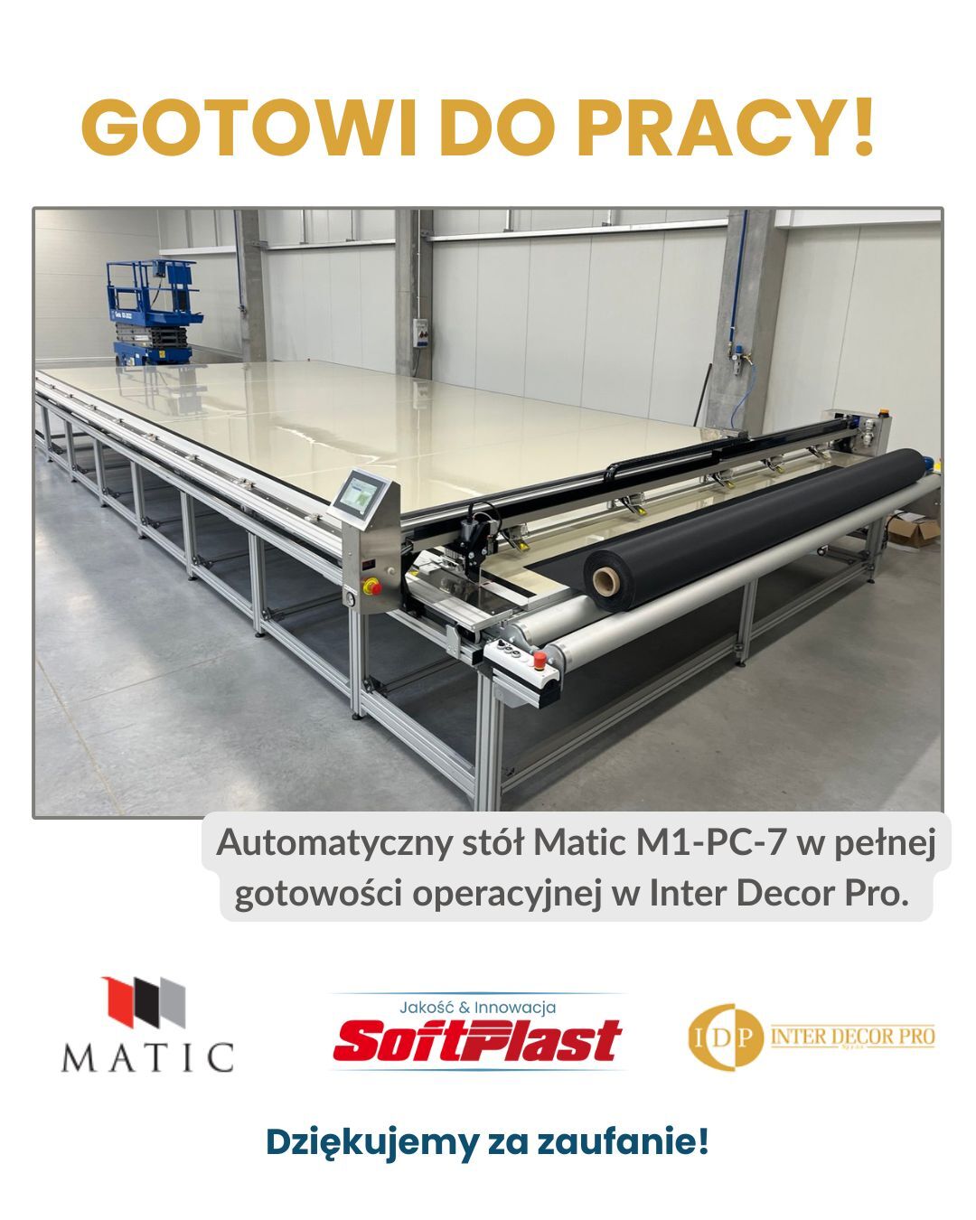 Zeszły tydzień w oddziale Inter Decor Pro pod Płońskiem upłynął pod znakiem wielkich zmian i nowoczesnej technologii. Nasz zespół serwisowy: Robert Pawlaczyk, Patryk Bąkowski oraz Marek Glubka, nasz handlowiec, sfinalizowali montaż zaawansowanego, automatycznego stołu do cięcia w osi XY – M1-PC-7 firmy MATIC Machines.