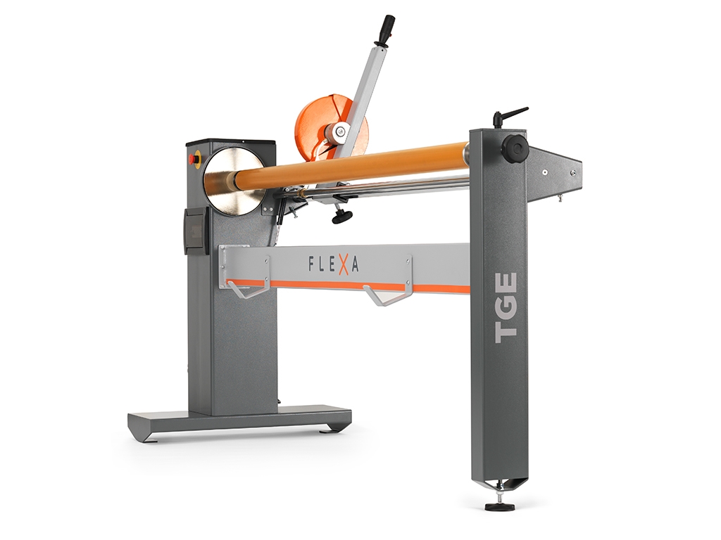 TGE to łatwe w obsłudze urządzenie, zaprojektowane do szybkiego i precyzyjnego rozcinania rolek na szerokości wymagane przez klienta. Urządzenie przecina rolki materiału o różnej szerokości ma mniejsze , a tym samym pozwala na zmniejszenie objętości magazynu poprzez utrzymywanie na stanie tylko rolek o pełnej szerokości. Urządzenie sterowane jest z PLC, dodatkowo może być wyposażone w cyfrowy wyświetlacz pomiaru cięcia. Maszyna jest bezpieczna w obsłudze, dzięki zastosowaniu ostrza tnącego z osłoną zabezpieczającą ze stopniowym odkrywaniem podczas procesu cięcia.